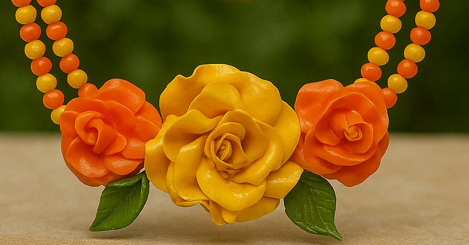 TAHERA Floral Haldi Mehndi Jewellery Set, Yellow Necklace & Earrings, Handmade Wedding Bridal Accessories for Women