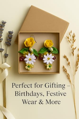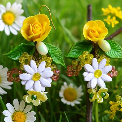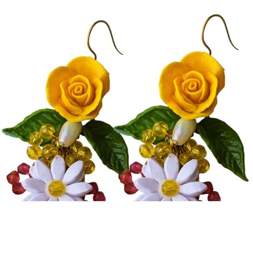 Tahera Handcrafted Yellow Rose Earrings | Haldi Floral Beaded Danglers | Mehndi Lightweight Boho Festive Jewelry.