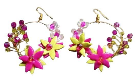 Tahera Handmade Floral Hoop Earrings – Pink Clay Flower Jewelry for Women & Girls – Lightweight & Unique Boho Gift Idea